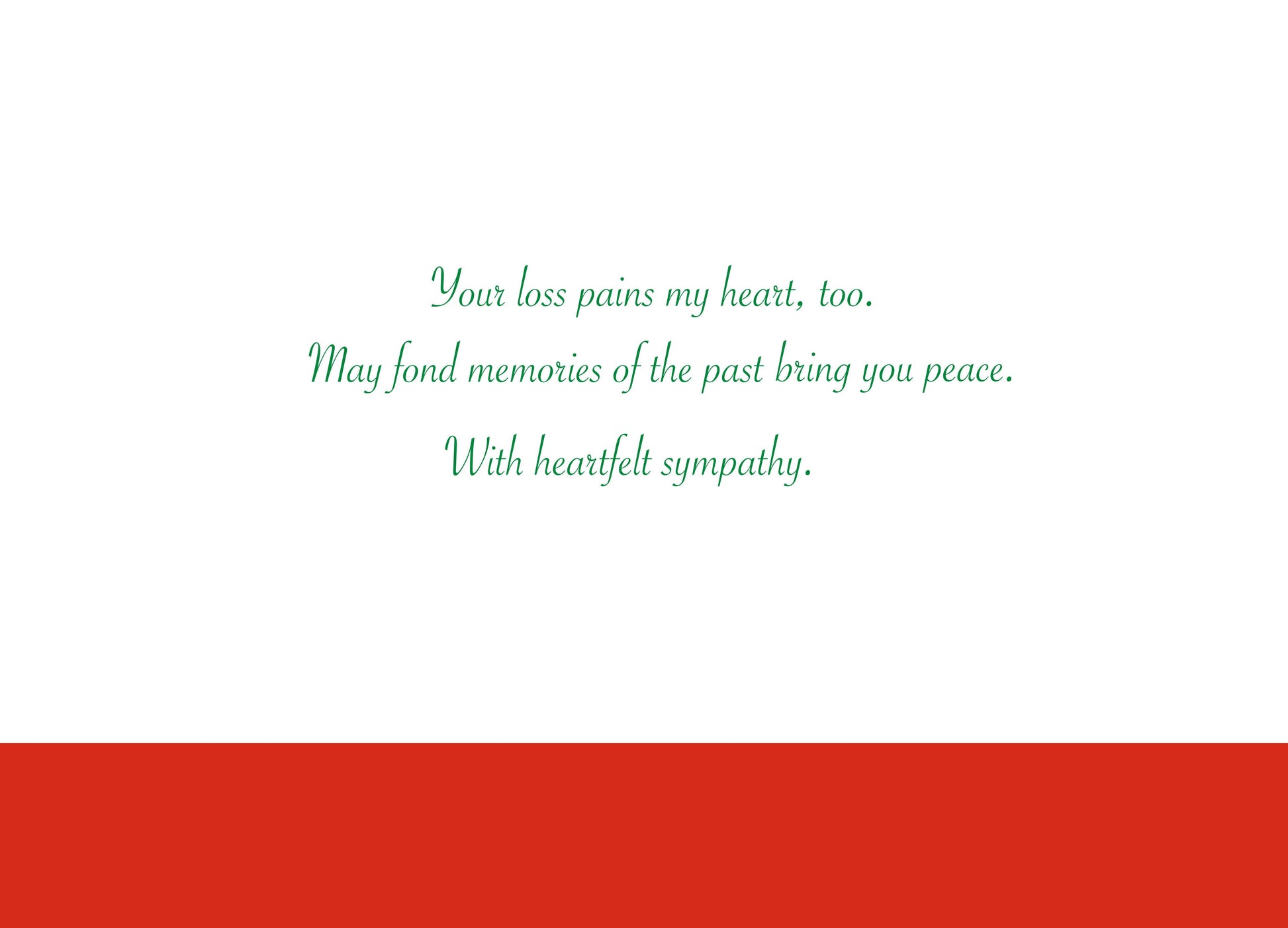 Page 3: Your loss pains my heart, too. May fond memories of the past bring you peace. With heartfelt sympathy.