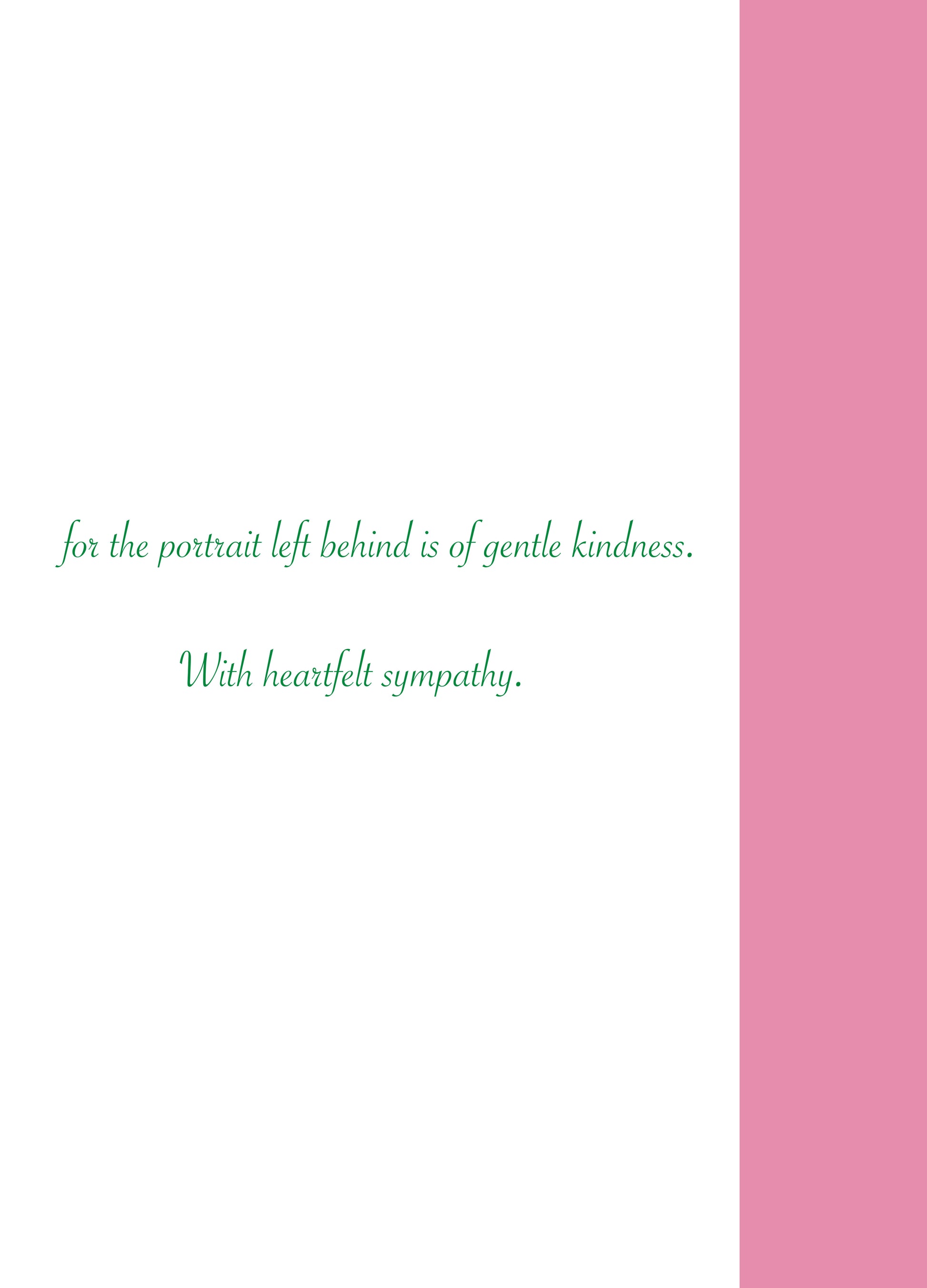 Page 3: for the portrait left behind is of gentle kindness. With heartfelt sympathy